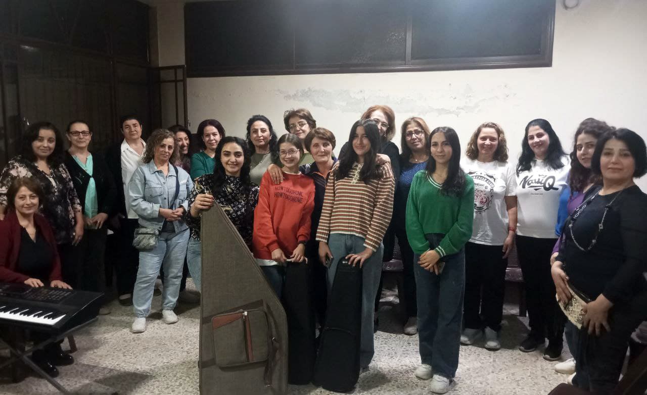 التقت "مدونة الموسيقا" قائد أوركسترا الكورال "ميادة جمول" التي تحدثت قائلة: «بدأت تشكيل الفرقة في شهر أيلول 2024، ولأسباب صحية في العائلة توقفت حتى آذار 2025، وشكلت الفرقة الموسيقية من 12 عازفاً، أما عدد المشاركين في الكورال فكان خمسون مغنية ينتمين إلى شرائح اجتماعية متعددة، وازداد العدد ليصل عدد المغنيات إلى 86 وعدد العازفين إلى 19، وكان أول عمل ننجزه أغنية "ما أحلى أن نعيش في خير وسلام" من كلمات الشاعر "زهير الدجيلي" وألحان "حسين قجور" من "العراق"، وقمنا بتصويره عند "قلعة شماميس" في شهر حزيران الماضي، بالتعاون مع برنامج اليوبيل التابع للمجلس الإسلامي الإسماعيلي المحلي، الذي قدم لنا صالة للتدريب ومستلزمات النقل للتصوير، وبتمويلي الشخصي».